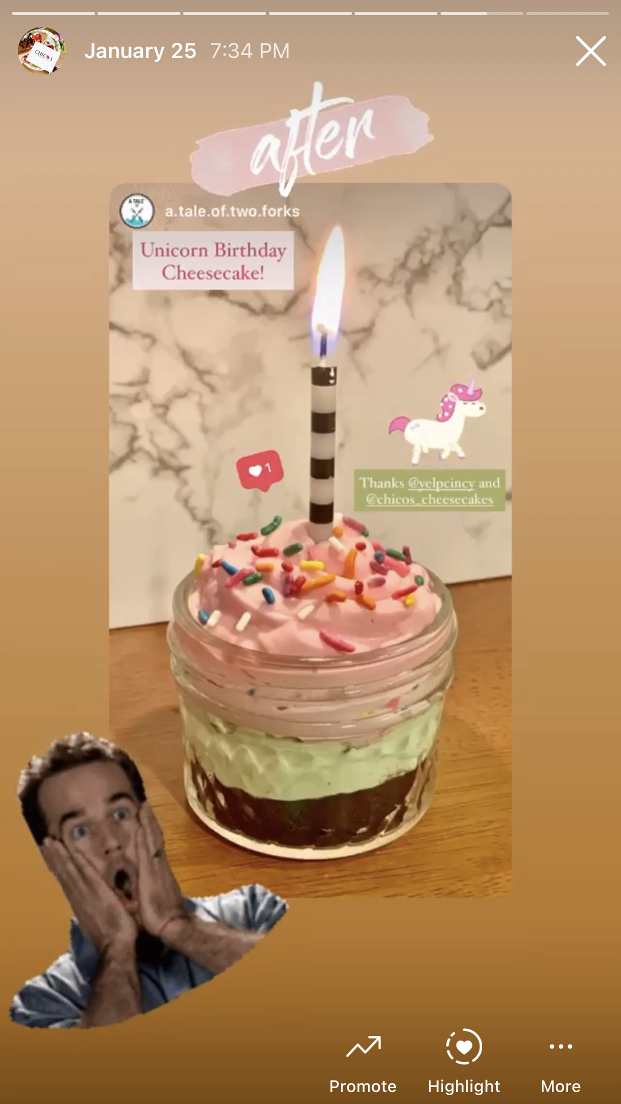 And check this out, Yelp Elites got to grab their cheesecake jars and DIY kits from the restaurant Metropole located in the eccentric 21c Hotel Museum found right in the heart of Downtown! Yelp Elites showed Chico’s Cheesecakes so much love and the virtual cooking show went off without a hitch! Families all across Cincinnati tuned in to create their own versions of our Unicorn Birthday Cheesecake. Check out all these creativity ya’ll!
